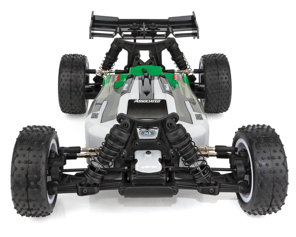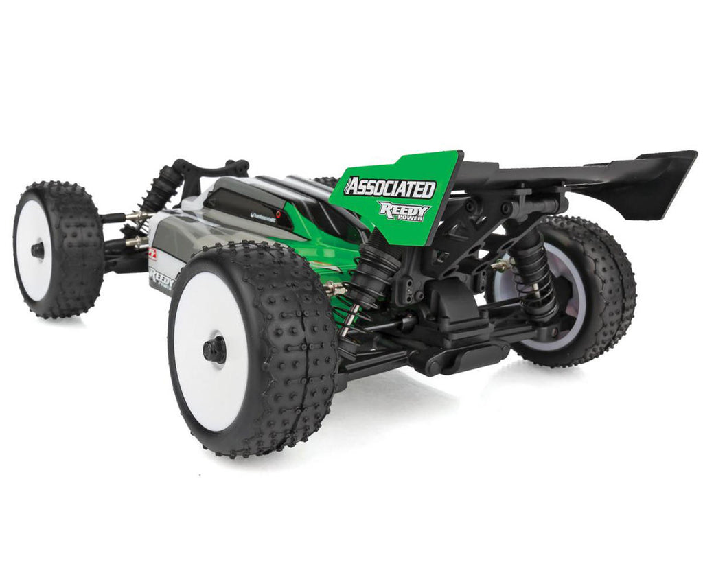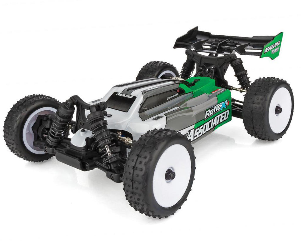 The Team Associated Reflex 14B Gamma RTR 4WD Buggy comes out of the box assembled, with a Reedy Power brushless ESC, motor, high-torque digital steering servo, and 2.4GHz radio system. With all that power and a 4WD drivetrain, the buggy's design allows you to harness that power and turn it into pure fun! Adjustable turnbuckles, caster blocks, and rear hubs make the Reflex Gamma 14B ready for any terrain you can throw at it. Additional features include three sealed differentials, aluminum steering rack, and lightweight aluminum center driveshaft. All you need to do is add batteries and you have big performance in a small-scale Ready-to-Run package!