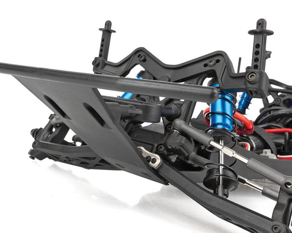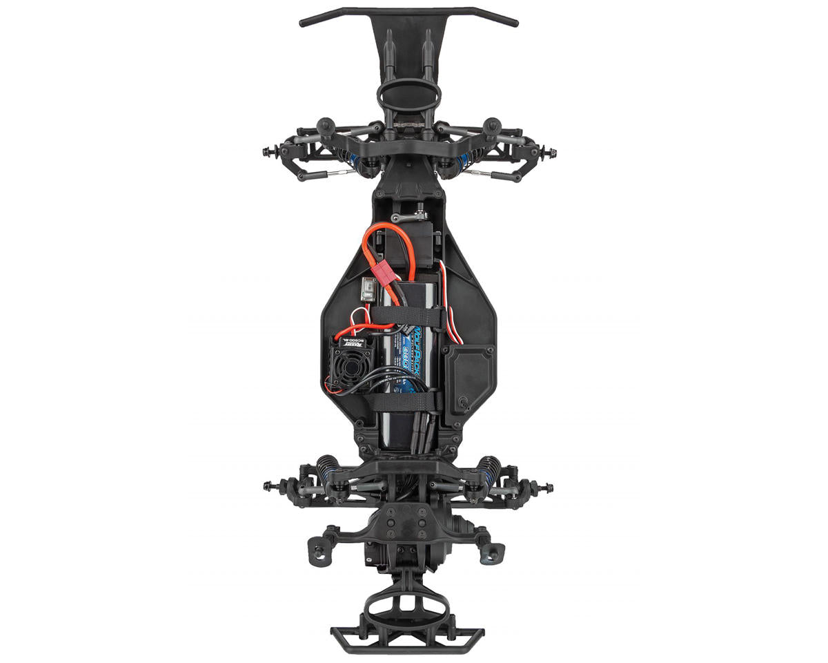 The chassis features independent suspension with oil filled shocks and adjustable turnbuckles for fine tuning. A durable lightweight aluminum top shaft, rugged steel turnbuckles, and adjustable suspension geometry give the Pro2 LT10SW the ultimate in handling on all terrain. This makes it a perfect platform for short course racing!