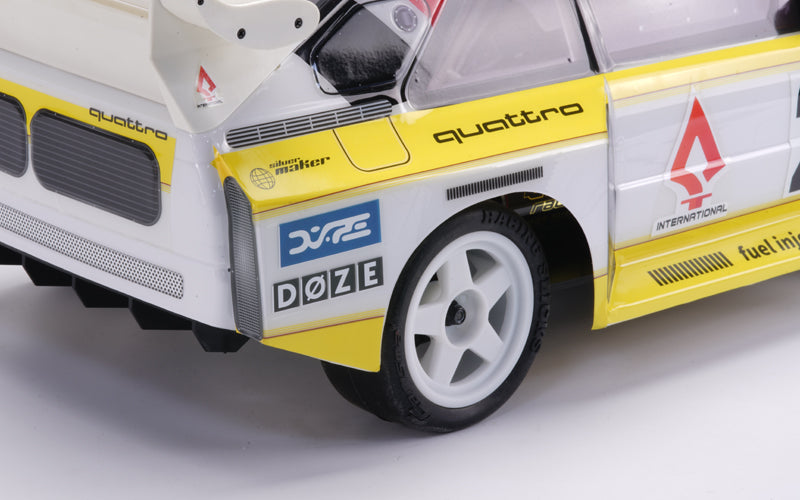 The original Audi Quattro was the first rally car to effectively utilize all-wheel drive, setting a benchmark for future vehicles with similar drive-trains. Carisma aimed to replicate the Group B rally experience by fitting the model with a 550 Big Can Brushless Motor for optimal RPM and torque.