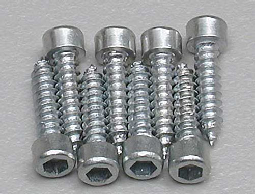 These zinc plated socket head sheet metal screws are fully threaded and have more applications than wood screws. The non-slip socket head makes hard to get at places easy! Perfect for mounting servos, landing gear straps, motor mounts and more.