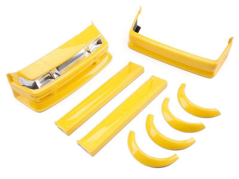 Body kit for #17214 TOYOTA LEVIN AE86 BODY Check out the Stage-D Levin AE86 Body Kit! This kit adds an aggressive JDM drift look to the HPI #17214 Toyota Levin body. It features aero body parts that are popular on real drift cars: Front bumper with deep chin spoiler, light buckets, rear bumper with deep lower skirt, fender flares, and side skirts. The kit includes clear body panels that are ready for custom paint, decals, headlight masks and mounting hardware needed to attach the aero parts to the body. Customize your drift body for the ultimate in drift looks! Requires #17214 Toyota Levin AE86 body. Also available is the #7129 Stage-D Trueno AE86 Body Kit for the #17209 Toyota Trueno AE86 Body.