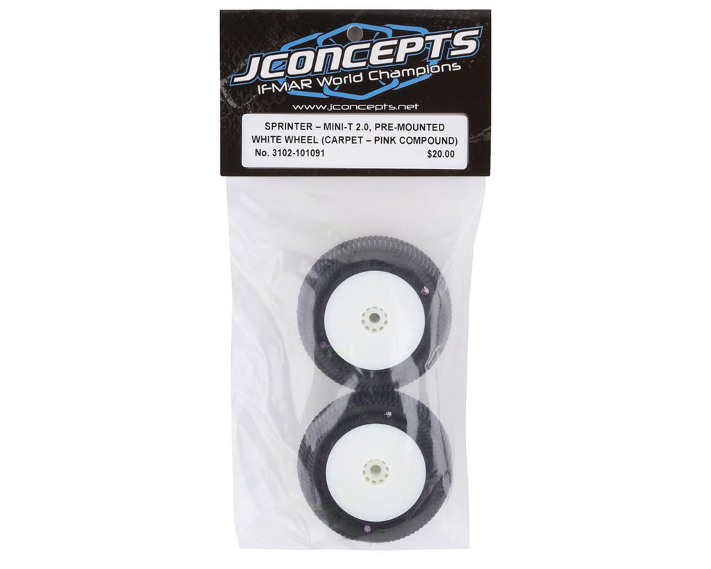 JConcepts Mini-T 2.0 Sprinter Pre-Mounted Rear Tires have square, angled pins that are stacked vertically to flex and fold evenly across the tire. Typically, a stacked tread will wear less and provide more forward bite while the aligned space helps rotation in the turns and gives a snappy release to square up quickly. Starting with the tread, the team focused on durability and performance to bring a rear tire option to market that competes on loose surfaces which are wet or dusty. The Sprinter tires are great for a variety of conditions and have provided grip and traction for stadium trucks for decades. The outer sidewall of the tire has angled pins incorporated into the design to help release the turn and provide the rotation not only needed in dirt off-road but specifically in dirt-oval racing. The blended tread to tire body is supported with a generous radius which promotes “pin snap” and resists tearing or separation. Horizontal traction bars connect several pins near the center of the tire which bonds a critical area for increased push at high-speed. The sidewall area blends nicely into a step-spike feature which helps smooth the transition in bumpy sections and create side-bite.