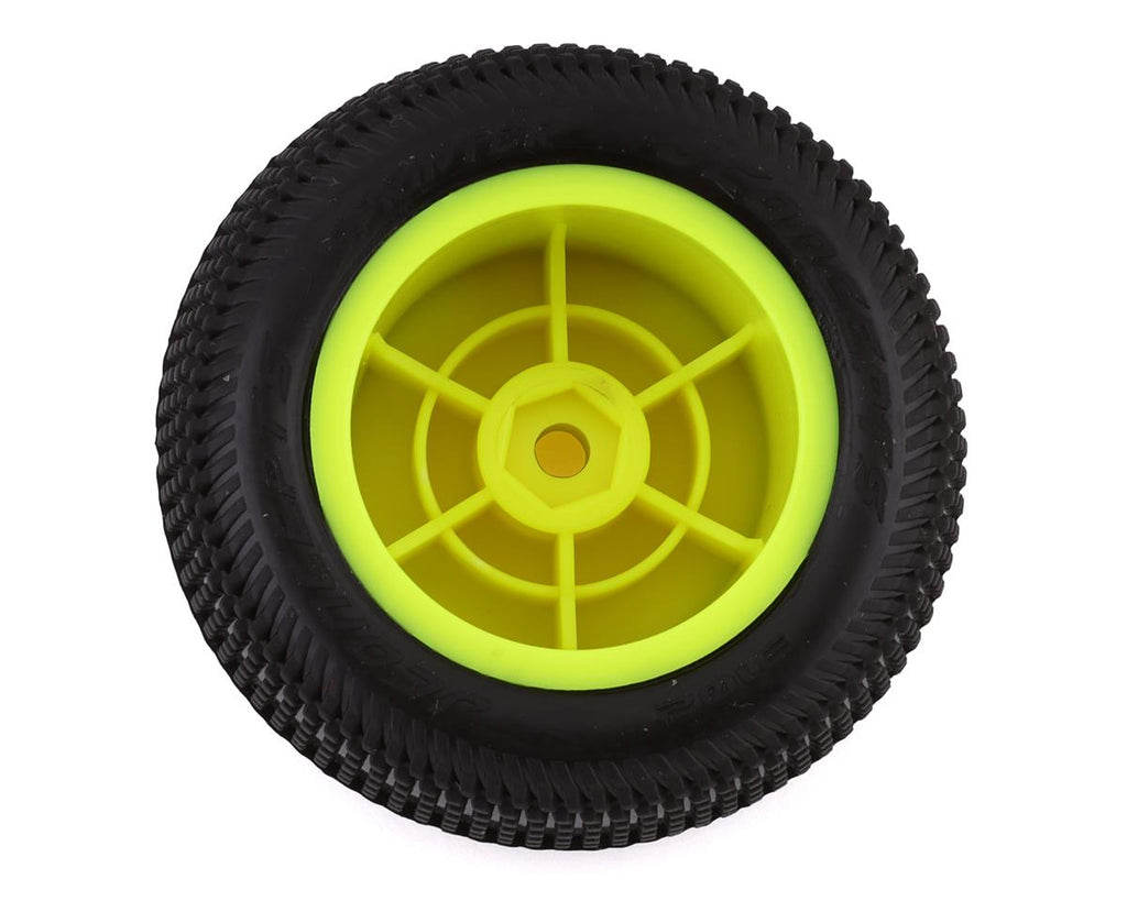 JConcepts Mini-T 2.0 Sprinter Pre-Mounted Rear Tires have square, angled pins that are stacked vertically to flex and fold evenly across the tire. Typically, a stacked tread will wear less and provide more forward bite while the aligned space helps rotation in the turns and gives a snappy release to square up quickly. Starting with the tread, the team focused on durability and performance to bring a rear tire option to market that competes on loose surfaces which are wet or dusty. The Sprinter tires are great for a variety of conditions and have provided grip and traction for stadium trucks for decades.
