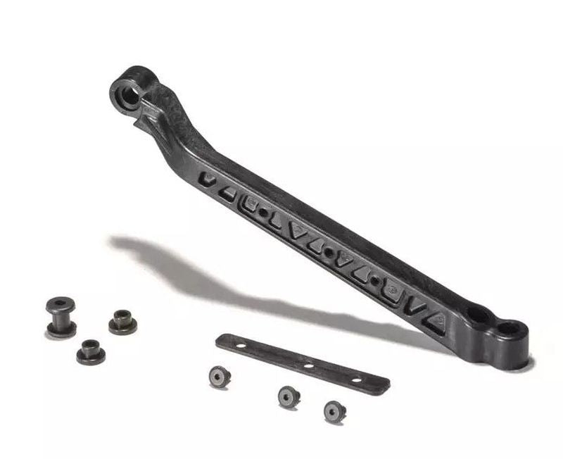 - Steering crank servo rod mount changed to a bushing type for adjustable steering response.
