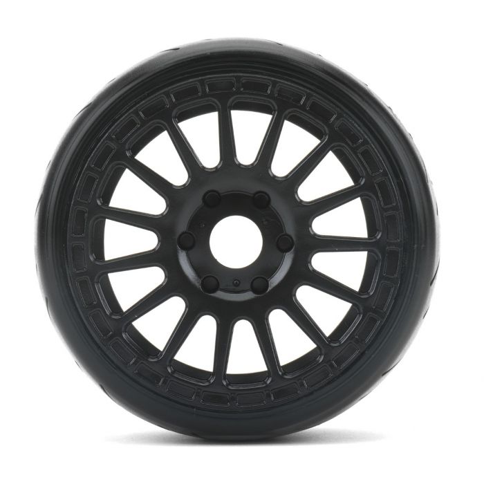 The ultimate choice for 1/8 class racing, as well as speed runs and high-speed bashers. The tread pattern offers great traction, with a belted carcass that will help to prevent tire expansion at high RPM. The tires are pre-mounted on durable 17mm hex wheels.