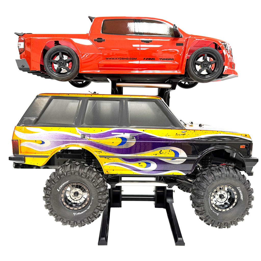 - Holds two 1/8 scale cars