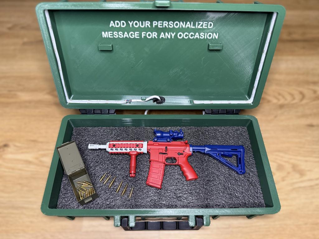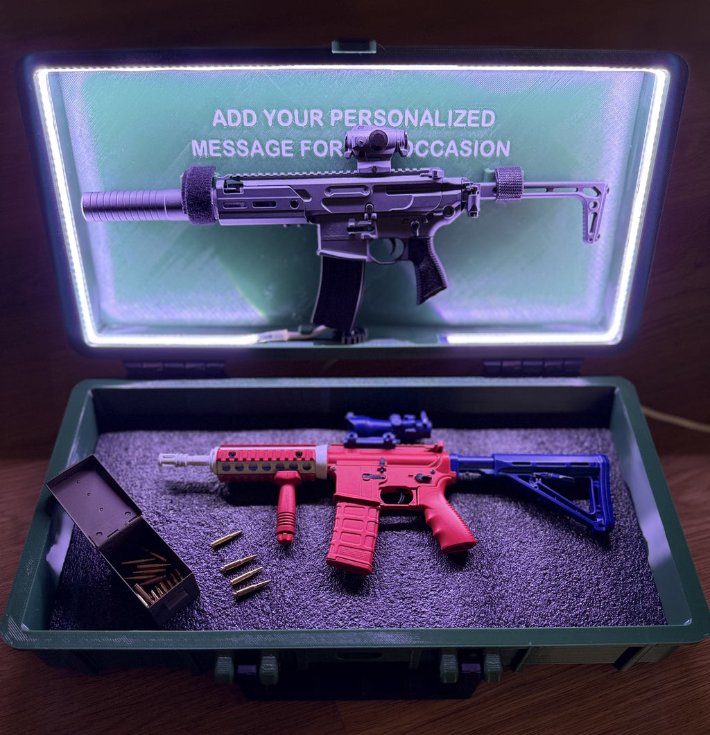 Elevate your diecast display with the RC Hop Up Parts 1/3 Scale Replica Gun Case, engineered specifically to fit 1 or 2 Goat Guns® models. Designed with collectors in mind, this miniature gun case combines durability, precision, and eye‑catching LED illumination to make your display stand out.