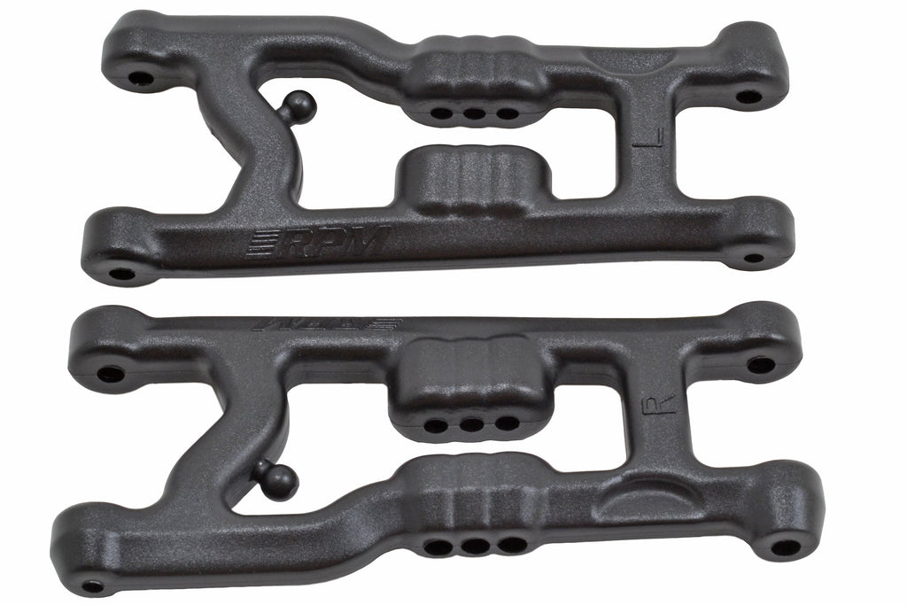 You can't go fast if your suspension settings don't stay locked in. With stock A-arms, the amount of slop at the hinge-pins can cause your suspension settings to wander (as much as 0.003" or .076mm of clearance in the hinge pin holes of a stock set of new A-arms). Not with RPM A-arms! Their hinge-pin holes are held to extremely strict tolerances, with no more than 0.0005" to 0.001" (.013 to .025mm) of clearance. That's an improvement of nearly 300%! They also use in-line screws to retain the outer hinge pins while ditching the inside retaining screws for shoulders in the hinge pin holes. This results in a weight reduction of 1.75 grams per A-arm (or 3.5 grams per pair) less than stock! Durability is also key to staying on-track. Whether bashing or racing, RPM A-arms are the toughest A-arms on the market, so a rough landing or a hit from another competitor won't take you out of the race! With unmatched performance, extremely lightweight materials and the ability to hold your suspension settings even after a wicked wreck, RPM A-arms will get you across the finish line EVERY time!