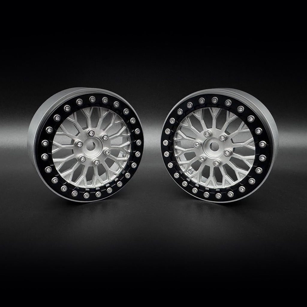 Introducing the Reefs RC 2.2 "SHIELD" machined aluminum Beadlock wheels! The wheel sets (sold in pairs) include machined aluminum hubs, black anodized machined beadlock rings, M2 and M2.5 stainless steel hardware and machined aluminum clamping rings. These wheels have a 2mm adjustable offset by flipping the wheel faces over. This allows you to fine tune your truck's width and looks without buying additional parts!