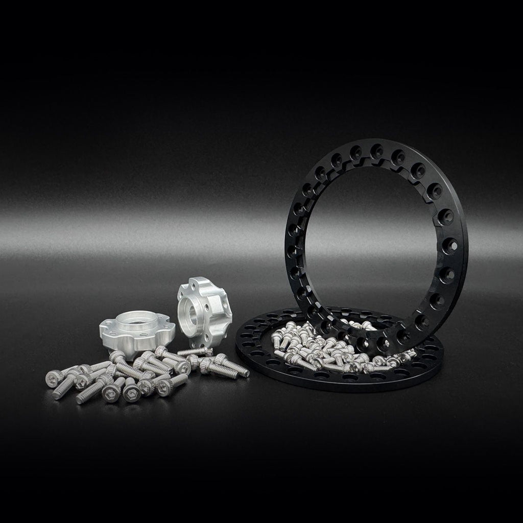 The wheels are designed to be high offset and portal friendly, fitting up to a 52mm diameter portal cover. Keeping performance in mind, the wheels are narrow at just 19mm/0.75" wide at the tire mounting surface and 25mm/0.98" wide overall. This helps reduce the side-to-side movement of the tire and foam on the wheel. To change a tire only 6 screws, need to be removed, ensuring quick and easy tire mounting/dismounting.