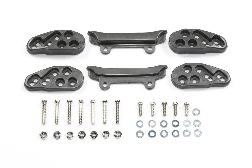 Mini 4WD users often equip their vehicles with front aluminum FRP plates for a wide roller setting. This enhancement often leads to user"s vehicles getting stuck on the course fence. Tamiya designed this underguard to block the gap and improve your vehicles performance.