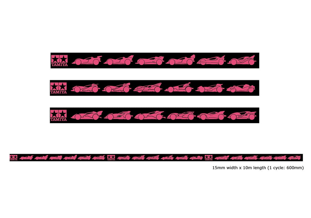 This tape product celebrates the 30th anniversary of the Fully Cowled Mini 4WD series. The design features silhouettes of eighteen Mini 4WD cars from the Japanese TV animation "Bakuso Kyodai Let’s & Go!" with Tamiya logos. Also, the size (15mm width x 10m length) is new! Use this multipurpose tape to secure components, or even for purely cosmetic purposes – the choice is yours!